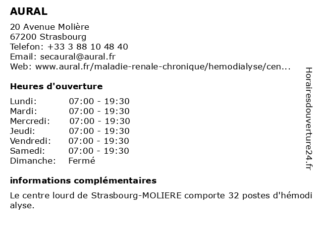 5 AURAL administration (Distance: 0,33 km) 11 Rue Alfred de Vigny, 67200 Strasbourg administration, aural 6 |