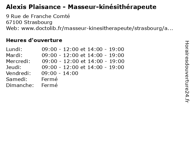 | Mercredi | 09:00-12:00 et 14:00-19:00 |