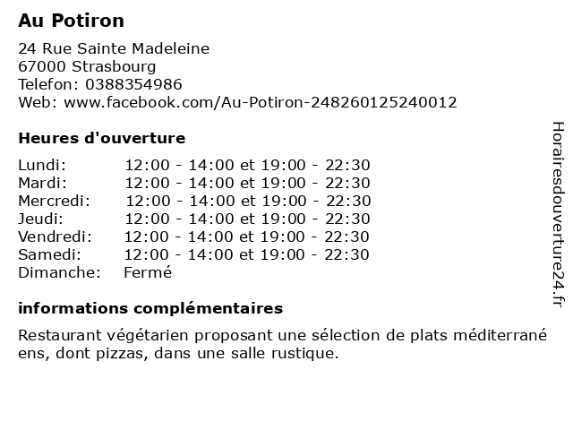 | Jeudi | 12:00-14:00 et 19:00-22:30 |