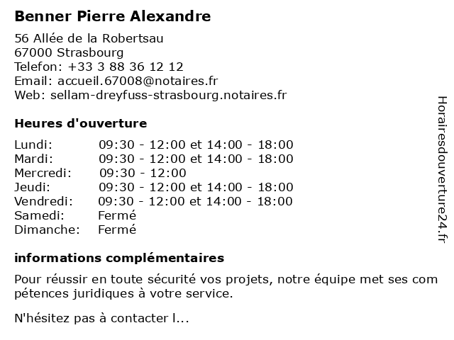 Horaires d'ouverture |