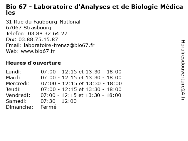 1 Bio 67 - Laboratoire d'Analyses et de Biologie Médicales (Distance: 1,27 km) 12 rue Genevieve Anthonioz, 67200 Strasbourg 67, analyses, bio, bio67, biologie, d'analyses, de, et, laboratoire, médicales, sante, services 2 Bio 67 - Laboratoire d'Analyses et de Biologie Médicales (Distance: 1,58 km) 1 Quai des Bateliers, 67000 Strasbourg 67, analyses, bio, biologie, d'analyses, de, et, labo, laboratoire, médical, médicale, médicales, santé 3 Bio 67 - Laboratoire d'Analyses et de Biologie Médicales (Distance: 2,86 km) 11 Avenue François Mitterrand, 67200 Strasbourg 67, analyses, bio, biologie, d'analyses, de, et, labo, laboratoire, médical, médicale, médicales, santé 4 Bio 67 - Laboratoire d'Analyses et de Biologie Médicales (Distance: 2,90 km) 4 Place de Haldenbourg, 67200 Strasbourg 67, analyses, bio, biologie, d'analyses, de, et, laboratoire, laboratoires, médicales, sante, services 5 Bio 67 - Laboratoire d'Analyses et de Biologie Médicales (Distance: 4,67 km) 114 Route de la Wantzenau, 67000 Strasbourg 67, analyses, bio, biologie, d'analyses, de, et, labo, laboratoire, médical, médicale, médicales, santé 6 Bio 67 - Laboratoire d'Analyses et de Biologie Médicales (Distance: 5,30 km) 42 Route d'Altenheim, 67100 Strasbourg 67, analyses, bio, biologie, d'analyses, de, et, labo, laboratoire, médical, médicale, médicales, santé |