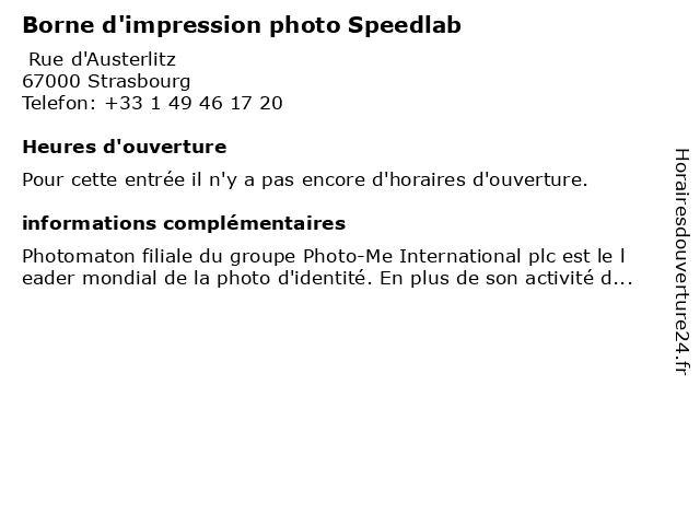 1 Borne d'impression photo Speedlab (Distance: 0,63 km) Place de l'Étoile, 67000 Strasbourg borne, d'impression, photo, speedlab 2 Borne d'impression photo Speedlab (Distance: 0,76 km) Passage de la Pomme de Pin, 67000 Strasbourg borne, d'impression, photo, speedlab 3 Borne d'impression photo Speedlab (Distance: 1,04 km) 5 Grand'Rue, 67000 Strasbourg borne, d'impression, photo, speedlab 4 Borne d'impression photo Speedlab (Distance: 3,81 km) 260 Rue Alphonse Adam, 67100 Strasbourg borne, d'impression, photo, speedlab 5 Borne d'impression photo Speedlab (Distance: 3,87 km) 6 Avenue de Strasbourg, 67400 Illkirch-Graffenstaden borne, d'impression, photo, speedlab 6 Borne d'impression photo Speedlab (Distance: 4,47 km) Place André Maurois, 67200 Strasbourg borne, d'impression, photo, speedlab |