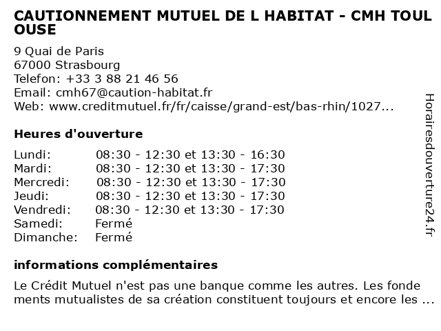 CAUTIONNEMENT MUTUEL DE L HABITAT - CMH TOULOUSE à Strasbourg