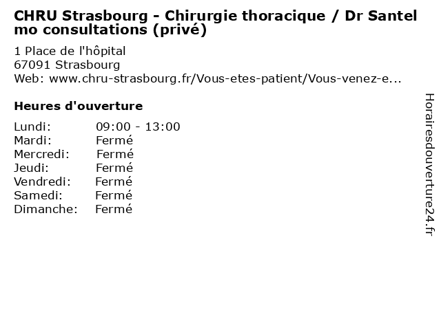 1 CHRU Strasbourg - Chirurgie thoracique / Dr Santelmo consultations (privé) (Distance: 3,79 km) - Avenue Molière, 67200 Strasbourg bureau, chirurgie, chru, consultation, consultations, dr, maladie, med, médecin, médecine, pratique, privé, santelmo, strasbourg, thoracique, thérapie, traitement 2 CHRU Strasbourg - Chirurgie thoracique / Dr Santelmo consultations (Distance: 0,00 km) 1 Place de l'hôpital, 67091 Strasbourg bureau, chirurgie, chru, consultation, consultations, dr, maladie, med, médecin, médecine, pratique, santelmo, strasbourg, thoracique, thérapie, traitement 3 CHRU Strasbourg - Chirurgie thoracique / Dr Santelmo sur rendez-vous (Distance: 0,00 km) 1 Place de l'hôpital, 67091 Strasbourg bureau, chirurgie, chru, consultation, dr, maladie, med, médecin, médecine, pratique, rendez, santelmo, strasbourg, sur, thoracique, thérapie, traitement, vous 4 CHRU Strasbourg - Chirurgie thoracique / Pr Massard sur rendez-vous (Distance: 0,00 km) 1 Place de l'hôpital, 67091 Strasbourg bureau, chirurgie, chru, consultation, dr, maladie, massard, med, médecin, médecine, pr, pratique, rendez, strasbourg, sur, thoracique, thérapie, traitement, vous 5 CHRU Strasbourg - Chirurgie thoracique / Pr Massard consultations (Distance: 0,00 km) 1 Place de l'hôpital, 67091 Strasbourg bureau, chirurgie, chru, consultation, consultations, dr, maladie, massard, med, médecin, médecine, pr, pratique, strasbourg, thoracique, thérapie, traitement 6 Medecin Nicola Santelmo (Chirurgien général) (Distance: 0,74 km) 1 Place de l'Hopital, 67091 Strasbourg chirurgien, docteur, général, medecin, nicola, sante, santelmo, services |
