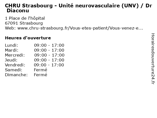 1 CHRU Strasbourg - Unité neurovasculaire (UNV) / Dr Aniculaesei (Distance: 0,00 km) 1 Place de l'hôpital, 67091 Strasbourg aniculaesei, bureau, chru, consultation, dr, maladie, med, médecin, médecine, neurovasculaire, pratique, strasbourg, thérapie, traitement, unité, unv 2 CHRU Strasbourg - Unité neurovasculaire (UNV) / Dr Bindila (Distance: 0,00 km) 1 Place de l'hôpital, 67091 Strasbourg bindila, bureau, chru, consultation, dr, maladie, med, médecin, médecine, neurovasculaire, pratique, strasbourg, thérapie, traitement, unité, unv 3 CHRU Strasbourg - Unité neurovasculaire (UNV) / Dr Neagu (Distance: 0,00 km) 1 Place de l'hôpital, 67091 Strasbourg bureau, chru, consultation, dr, maladie, med, médecin, médecine, neagu, neurovasculaire, pratique, strasbourg, thérapie, traitement, unité, unv 4 CHRU Strasbourg - Unité neurovasculaire (UNV) / Dr Quenardelle (Distance: 0,00 km) 1 Place de l'hôpital, 67091 Strasbourg bureau, chru, consultation, dr, maladie, med, médecin, médecine, neurovasculaire, pratique, quenardelle, strasbourg, thérapie, traitement, unité, unv 5 CHRU Strasbourg - Unité neurovasculaire (UNV) / Dr Yalo (Distance: 0,00 km) 1 Place de l'hôpital, 67091 Strasbourg bureau, chru, consultation, dr, maladie, med, médecin, médecine, neurovasculaire, pratique, strasbourg, thérapie, traitement, unité, unv, yalo 6 CHRU Strasbourg - Unité neurovasculaire (UNV) (Distance: 3,79 km) - Avenue Molière, 67200 Strasbourg aniculaesei, bureau, chru, consultation, dr, maladie, med, médecin, médecine, neurovasculaire, pratique, strasbourg, thérapie, traitement, unité, unv |