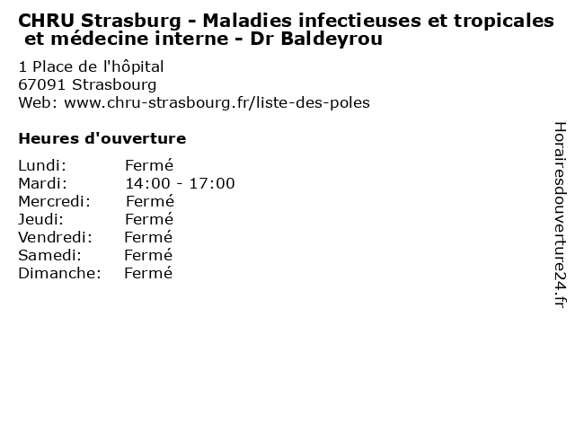 Termes de recherche pour CHRU Strasburg - Maladies infectieuses et tropicales et médecine interne - Dr Baldeyrou:et, bureau, med, medecine, maladie, traitement, interne, médecin, consultation, dr, pratique, chru, maladies, therapie, infectieuses, tropicales, strasburg, baldeyrou |