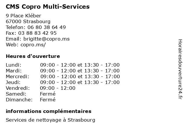 | Lundi | 09:00-12:00 et 13:30-17:00 |