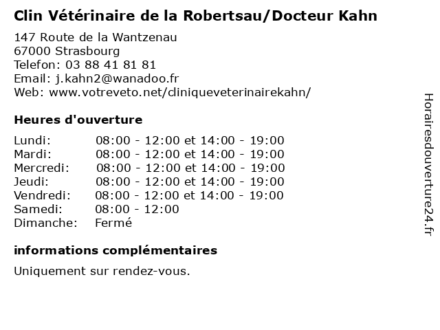 | Lundi | 08:00-12:00 et 14:00-19:00 |
