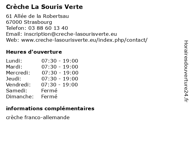 | Mercredi | 07:30-19:00 |