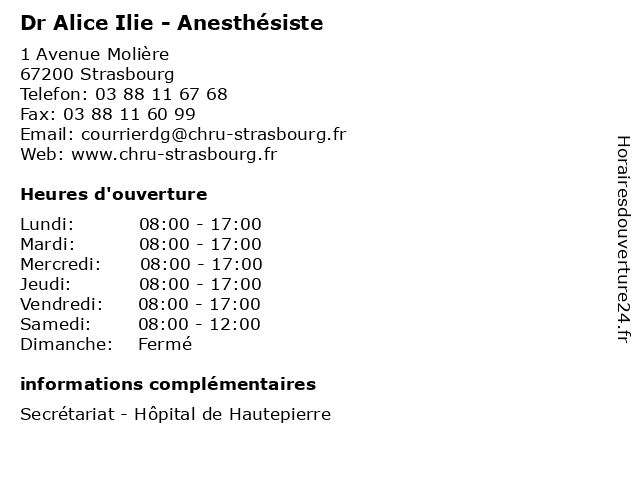 1 Dr Bartholomeus Calon - Anesthésiste (Distance: 0,00 km) 1 Avenue Molière, 67200 Strasbourg anesthésiste, bartholomeus, calon, consultation, docteur, dr, med, médecin, traitement 2 Dr Antoine Charton - Anesthésiste (Distance: 0,00 km) 1 Avenue Molière, 67200 Strasbourg anesthésiste, antoine, charton, consultation, docteur, dr, med, médecin, traitement 3 Alice Romary - Naturopathe (Distance: 2,10 km) 32 Rue du Moulin, 67205 Oberhausbergen alice, alimentation, bien être, massage, naturopathe, nutrition, plante, romary, réflexologie, sante 4 Alice Jung - Fasciapulsologue (Distance: 2,98 km) 1 Rue Paul Muller Simonis, 67000 Strasbourg alice, fasciapulsologue, jung, strasbourg, thérapie, toucher 5 Alice Délice (Distance: 3,01 km) 31 Place Kléber, 67000 Strasbourg alice, cuisine, délice, patisserie, ustensils, équipement 6 Maître Alice Enderlé - Avocate (Distance: 3,65 km) 14 Avenue Pierre Mendès, 67300 Schiltigheim alice, avocate, avocats, cabinet, conseils, contentieux, enderlé, juridique, justice, litiges, maître, services |