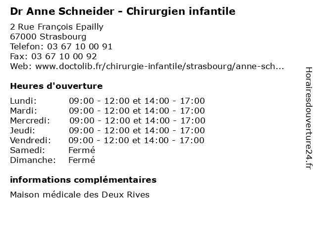 Termes de recherche pour Dr Anne Schneider - Chirurgien infantile:strasbourg, médicale, maison, anne, rives, deux, infantile, schneider, dr, chirurgien, 67000 |