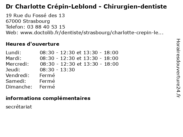 | Mercredi | 08:30-12:30 et 13:30-18:00 |