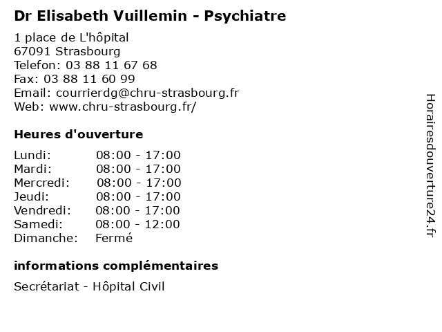 1 Dr Estelle Godard - Psychiatre (Distance: 0,00 km) 1 place de L'hôpital, 67091 Strasbourg consultation, docteur, dr, estelle, godard, med, médecin, psychiatre, traitement 2 Dr Pierre-Louis Kieffer - Psychiatre (Distance: 0,00 km) 1 place de L'hôpital, 67091 Strasbourg consultation, docteur, dr, kieffer, louis, med, médecin, pierre, psychiatre, traitement 3 Dr Atifa Koriche - Psychiatre (Distance: 0,00 km) 1 place de L'hôpital, 67091 Strasbourg atifa, consultation, docteur, dr, koriche, med, médecin, psychiatre, traitement 4 Dr Anne-Sophie Lefebvre-Ritter - Psychiatre (Distance: 0,00 km) 1 place de L'hôpital, 67091 Strasbourg anne, consultation, docteur, dr, lefebvre, med, médecin, psychiatre, ritter, sophie, traitement 5 Dr Michel Patris - Psychiatre (Distance: 0,00 km) 1 place de L'hôpital, 67091 Strasbourg consultation, docteur, dr, med, michel, médecin, patris, psychiatre, traitement 6 Dr Pierre Vidailhet - Psychiatre (Distance: 0,00 km) 1 place de L'hôpital, 67091 Strasbourg consultation, docteur, dr, med, médecin, pierre, psychiatre, traitement, vidailhet |
