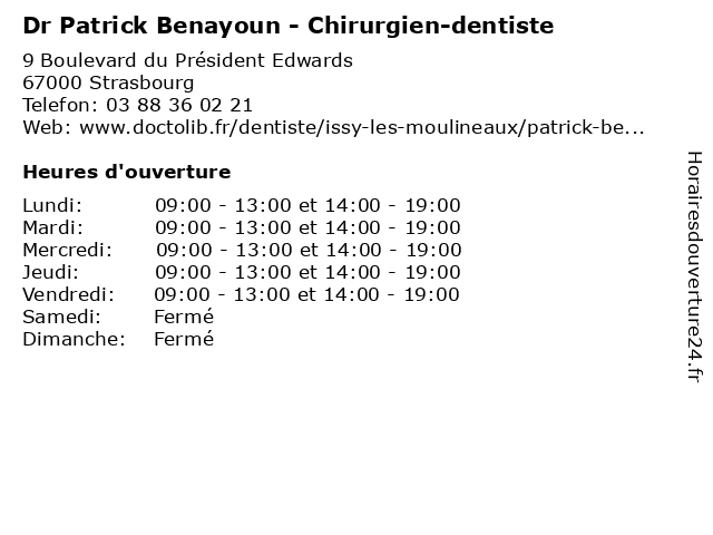 | Lundi | 09:00-13:00 et 14:00-19:00 |