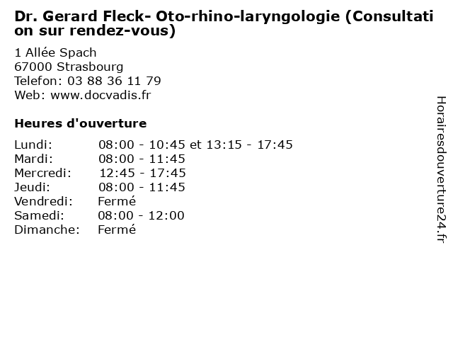 1 Dr. Gerard Fleck- Oto-rhino-laryngologie (Autre) (Distance: 0,00 km) 1 Allée Spach, 67000 Strasbourg autre, consultation, docteur, dr., fleck, gerard, laryngologie, oto, rhino, santé 2 Fleck & Co (Distance: 2,79 km) 9 Rue Du Ruisseau Bleu, 67100 Strasbourg bleus, fleck, poissons, restaurants 3 Medecin Elisabeth Kruczek - Consultation a domicile (Gériatre) (Distance: 3,12 km) 17 Saint Aloise, 67100 Strasbourg consultation, docteur, domicile, elisabeth, gériatre, kruczek, medecin, sante, services 4 Fleck serrurerie Strasbourg (Distance: 3,34 km) 13 boulevard de Lyon, 67000 Strasbourg coffres-forts, fleck, fleck serrurerie strasbourg, serrurerie, strasbourg 5 Alsa Cles Fleck-beyer (Distance: 3,35 km) 13 Boulevard de Lyon, 67000 Strasbourg alsa, beyer, cles, fleck 6 Dr.Jean Bernard Balouka-Oto-rhino-laryngologie (Distance: 3,37 km) 29 Rue Joseph Guerber, 67100 Strasbourg balouka, bernard, consultation, docteur, dr.jean, laryngologie, oto, rhino, santé |