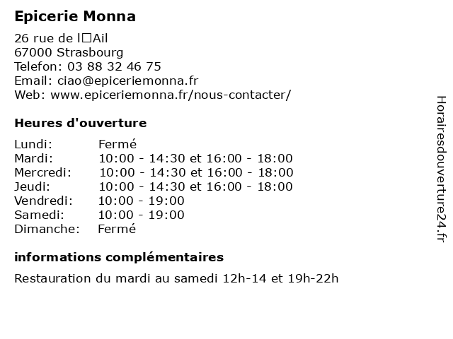 | Lundi | Fermé |