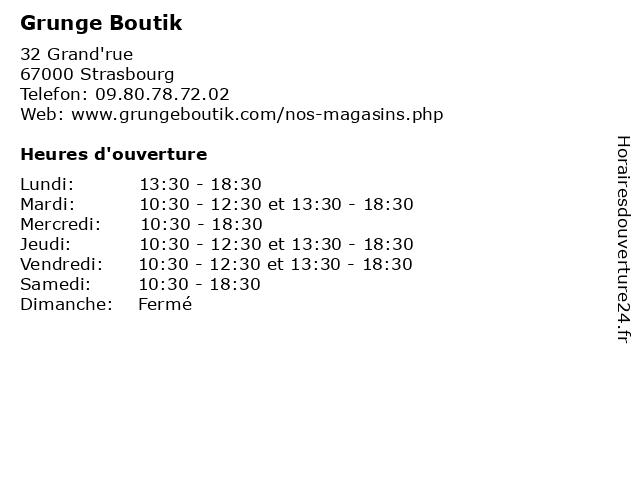 | Vendredi | 10:30-12:30 et 13:30-18:30 |
