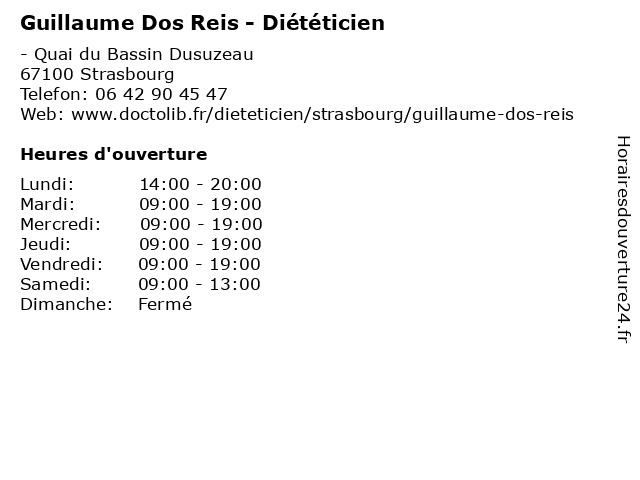 1 Morgane Ohlmann - Diététicien (Distance: 0,30 km) 96 Avenue du Rhin, 67100 Strasbourg alimentation, dieteticien, diététicien, morgane, nourriture, ohlmann, sante 2 Dr Guillaume Bauer - Chirurgien-dentiste - secrétariat (Distance: 0,53 km) 8 Rue de Londres, 67000 Strasbourg bauer, chirurgien, consultation, dentiste, docteur, dr, guillaume, med, secrétariat 3 Dr Guillaume Schatz - Médecin généraliste (Distance: 0,62 km) 8 Rue de Londres, 67000 Strasbourg dr, guillaume, généraliste, généraux, médecin, schatz, soins 4 Dr Guillaume Arnould - Radiologue (Distance: 1,42 km) 8 Rue François Epailly, 67000 Strasbourg arnould, consultation, docteur, dr, guillaume, med, médecin, radiologue, traitement 5 Dr Guillaume Marzolf - Radiologue (Distance: 1,43 km) 4 Rue Catherine Kany, 67000 Strasbourg consultation, docteur, dr, guillaume, marzolf, med, médecin, radiologue, traitement 6 Guillaume Stolz - Ostéopathe (Distance: 1,51 km) 31 rue de Zurich, 67000 Strasbourg bien-être, guillaume, ostéopathe, santé, services, stolz |