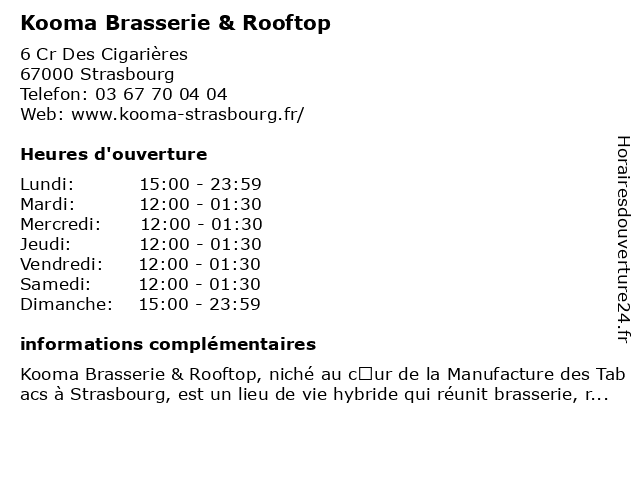 | Termes de recherche pour Kooma Brasserie & Rooftop:bar, pizzeria, brasserie, rooftop, kooma |