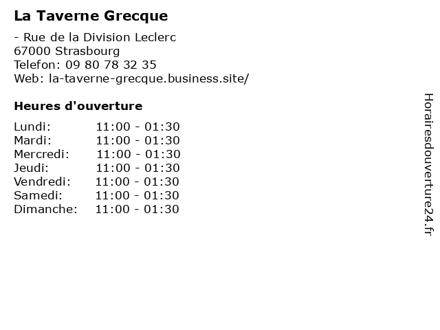 | Samedi | 11:00-01:30 |