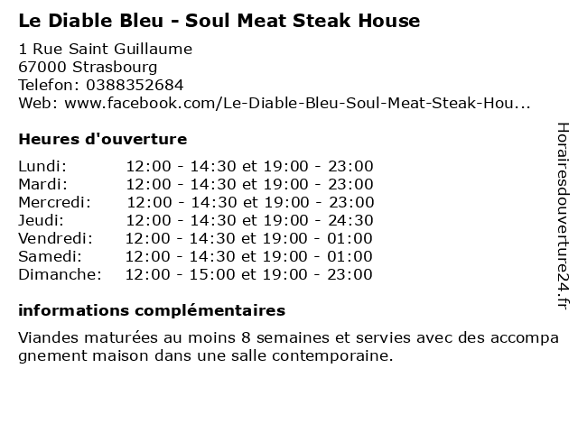 Termes de recherche pour Le Diable Bleu - Soul Meat Steak House:restauration, restaurant, café, le, bar, bistrot, brasserie, bleu, house, bistro, steak, soul, meat, diable |