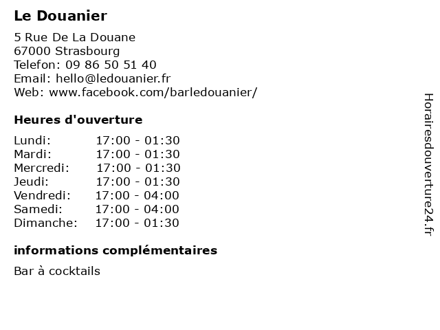 | Jeudi | 17:00-01:30 |