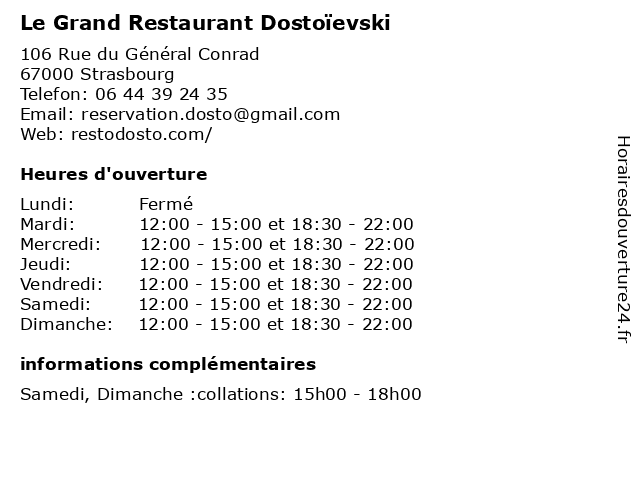 | Dimanche | 12:00-15:00 et 18:30-22:00 |