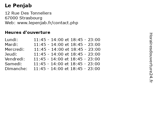 | Mardi | 11:45-14:00 et 18:45-23:00 |