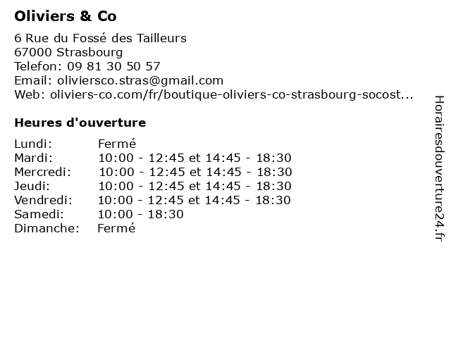 1 Resaurant Houmous & Co (Distance: 0,22 km) 11 Rue de la Division Leclerc, 67000 Strasbourg co, houmous, libanais, libanaise, resaurant, restaurant, restauration, spécialités, épicerie 2 Kids & Co (Distance: 0,23 km) 10 Rue des Francs Bourgeois, 67000 Strasbourg accessoires, boutique, chaussures, co, kids, mode 4 Julie & Co (Distance: 0,80 km) 24 Place des Halles, 67000 Strasbourg accessoires, co, julie, mode, vêtements 6 Columbus Café & Co (Distance: 1,16 km) 3 Place Dauphine, 67100 Strasbourg bar, boissons, café, cafés, chaudes, chocolat, co, coffee-shop, columbus, expressos, muffins, restaurant, restauration, sandwichs, thé  |
