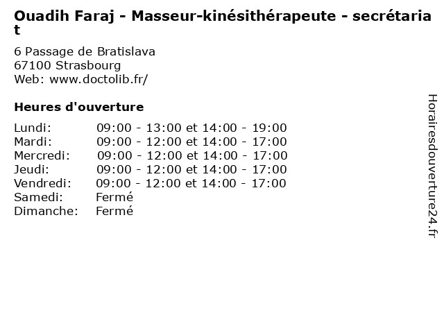 | Mardi | 09:00-12:00 et 14:00-17:00 |