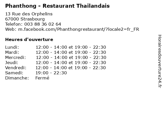 | Jeudi | 12:00-14:00 et 19:00-22:30 |