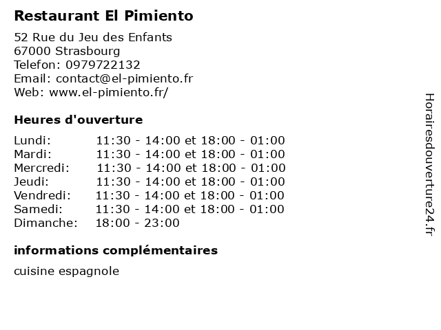 | Mardi | 11:30-14:00 et 18:00-01:00 |
