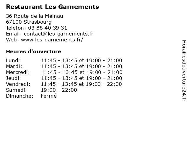 | Mardi | 11:45-13:45 et 19:00-21:00 |