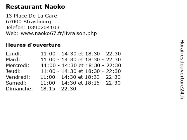 | Jeudi | 11:00-14:30 et 18:30-22:30 |