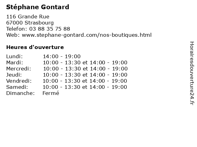 | Samedi | 10:00-13:30 et 14:00-19:00 |