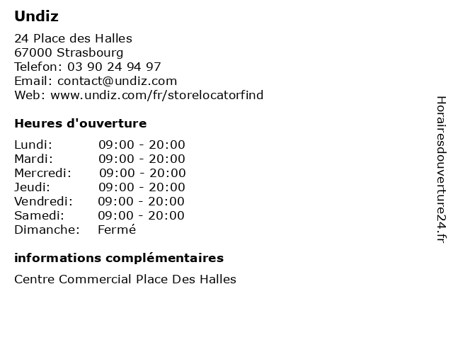 1 Undiz (Distance: 0,52 km) 6 Place Kléber, 67000 Strasbourg accessoires, habillement, mode, pret à porter, undiz, vêtements 2 Undiz (Distance: 1,94 km) 3 Place Dauphine, 67100 Strasbourg body, culotte, dessous, femme, lingerie, maillots, nuisette, undiz 3 The Body Shop - CLOSED (Distance: 0,01 km) 11024 Place Des Halles Local, 67000 Strasbourg body, boutique de cadeaux, closed, shop, the 4 Calzedonia (Distance: 0,07 km) 24 Cc Place Des Halles, 67000 Strasbourg calzedonia, magasin de maillots de bain 5 The Body Shop - CLOSED (Distance: 0,38 km) 21 Rue de la haute montee, 67000 Strasbourg body, boutique de cadeaux, closed, shop, the 6 Rituals (Distance: 0,40 km) 24 Place des Halles, 67000 Strasbourg bath, beauty, body, gifts, interior, make-up, parfum, rituals, skincare, travel, wellness |