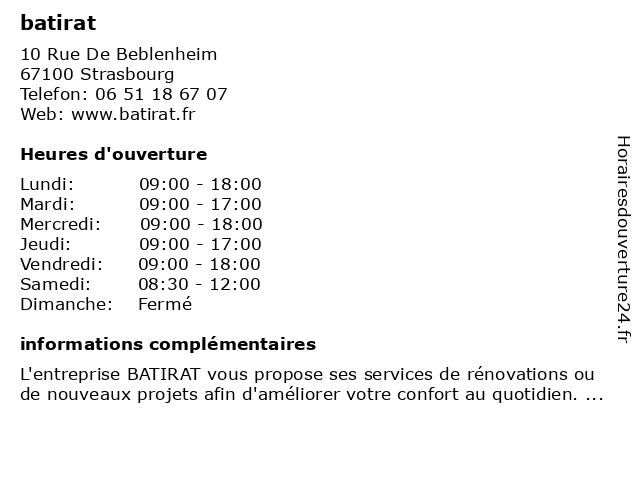| Samedi | 08:30-12:00 |