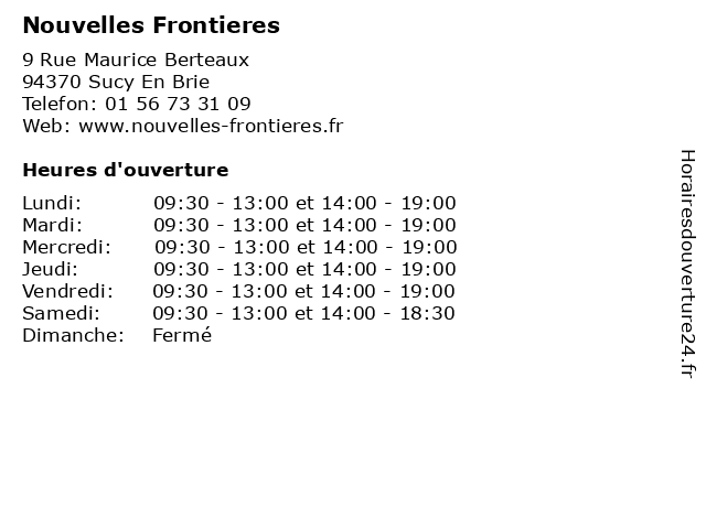 Lundi | 09:30-13:00 et 14:00-19:00 |