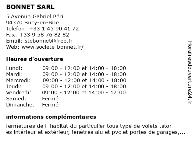 Horaires d'ouverture |