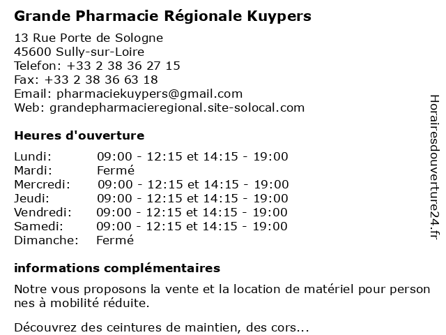 | Mercredi | 09:00-12:15 et 14:15-19:00 |