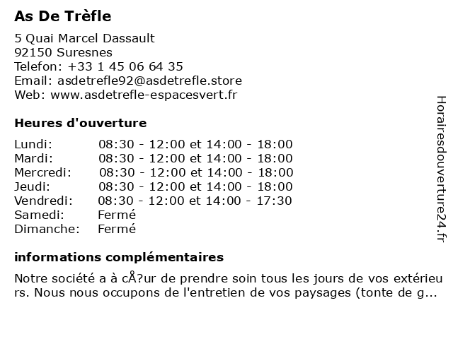 1 AS Deco Paris (Distance: 0,84 km) 26 Rue Victor Diederich, 92150 Suresnes as, coaching, conseil, deco, décoration, intérieure, paris 2 AS Autosécurité Contrôle Technique SURESNES (Distance: 0,88 km) 40 Rue du docteur marc bombiger, 92150 SURESNES as, autosécurité, contrôle, suresnes, technique 3 Le Trèfle - Pont de Sèvres (Distance: 3,11 km) 21 Quai Alphonse le Gallo, 92100 Boulogne-Billancourt boulogne, coworking, de, espace, le, le trèfle, pont, pont de sèvres, sèvres, travail, trèfle 4 Trèfle Applications (Distance: 3,83 km) 5 Place de Marivel, 92310 Sèvres affaires, applications, editeur, logiciels, process, suivi, trèfle 5 As Panelas De Isadora (Distance: 4,60 km) 54 Avenue Emile Zola, 75015 Paris isadora, panelas, restaurants 6 AS Détectives (Distance: 4,90 km) 70 Avenue Kléber, 75016 Paris as, bureaux, détective, détectives, privé, professionnels, recherche |