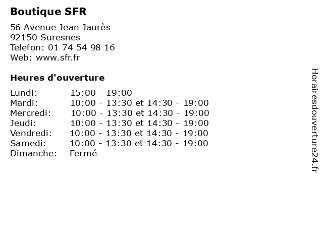 | Mercredi | 10:00-13:30 et 14:30-19:00 |