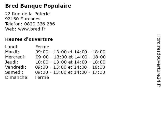 1 Bred Banque Populaire (Distance: 1,26 km) 18 Place du Général Leclerc, 92150 Suresnes agence, argent, bancaire, banque, bred, populaire, prêts, service, épargne 2 Bred Banque Populaire (Distance: 2,28 km) 99 Rue Paul Vaillant Couturier, 92000 Nanterre agence, argent, bancaire, banque, bred, populaire, prêts, service, épargne 3 Bred Banque Populaire (Distance: 3,51 km) 5 Rue Tony Garnier, 92100 Boulogne assurances, banque, bred, populaire, services 4 Bred Banque Populaire (Distance: 3,52 km) 42 Rue Maurice Thorez, 92000 Nanterre agence, assurance, bancaire, banque, bred, populaire 5 Bred Banque Populaire (Distance: 3,87 km) 105 Boulevard de Montmorency, 75016 Paris assurances, banque, bred, populaire, services 6 Bred Banque Populaire (Distance: 4,06 km) 17 Avenue de l'Arche, 92400 Courbevoie assurances, banque, bred, populaire, services |