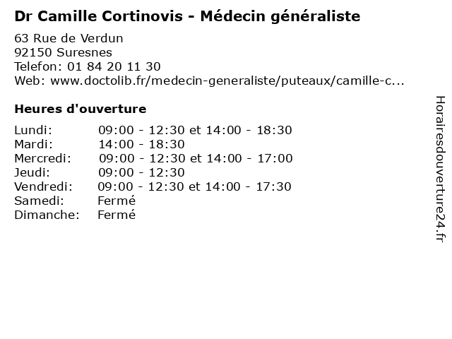 | Lundi | 09:00-12:30 et 14:00-18:30 |