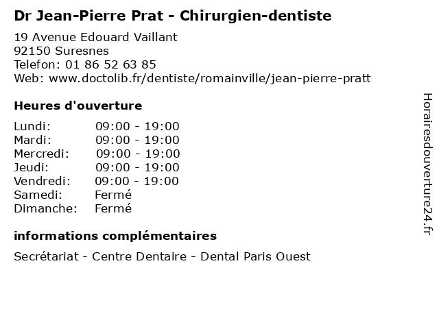 1 Dr Jean-Pierre Prat - Chirurgien-dentiste (Distance: 17,03 km) 3 Rue Etienne Dolet, 93230 Romainville chirurgien, dentaire, dentiste, dr, implantologie, jean, parodontologie, pierre, prat 2 Mireia Prat Garcia - Masseur-kinésithérapeute (Distance: 4,00 km) 104 boulevard Raymond-Poincaré, 92380 Garches consultation, docteur, dr, garcia, kinésithérapeute, masseur, med, mireia, médecin, prat, traitement 3 Maître Lorene Prat - Avocate (Distance: 4,15 km) 4-6 Avenue d’Alsace, 92400 Courbevoie avocate, avocats, cabinet, conseils, contentieux, juridique, justice, litiges, lorene, maître, prat, services 4 Maître Cyrielle Prat - Avocate (Distance: 5,45 km) 16 Avenue Bugeaud, 75116 Paris avocate, avocats, cabinet, conseils, contentieux, cyrielle, juridique, justice, litiges, maître, prat, services 5 Maître Sébastien Prat - Avocat (Distance: 7,19 km) 53 Quai d'Orsay, 75007 Paris avocat, droit, maître, négociation, prat, sébastien 6 Bordonnet Prat Daniele (Distance: 8,26 km) Hopital Bellan, 75014 Paris bordonnet, daniele, prat, restaurants |