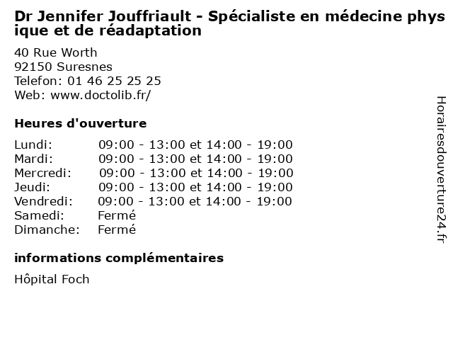 | Jeudi | 09:00-13:00 et 14:00-19:00 |