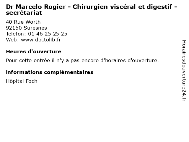 | Appeler Dr Marcelo Rogier - Chirurgien viscéral et digestif - secrétariat | |
