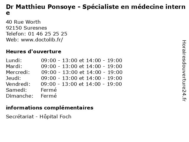 | Lundi | 09:00-13:00 et 14:00-19:00 |