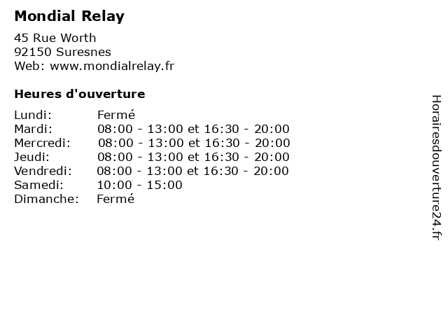 1 Mondial Relay (Distance: 2,01 km) 182 Boulevard de la Republique, 92210 Saint Cloud assurances, banques, mondial, mondial relay, relay, services 2 Mondial Relay (Distance: 2,51 km) - Les 4 temps, 92800 PUTEAUX LA DEFENSE assurances, banques, mondial, mondial relay, relay, services 3 Mondial Relay (Distance: 2,92 km) 25 Rue de la Liberation, 92210 Saint Cloud assurances, banques, mondial, mondial relay, relay, services 4 Mondial Relay (Distance: 3,18 km) 1 Place du Passage, 92210 Saint Cloud assurances, banques, mondial, mondial relay, relay, services 5 Mondial Relay (Distance: 4,78 km) 157 Boulevard Murat, 75016 Paris assurances, banques, mondial, mondial relay, relay, services 6 Mondial Relay (Distance: 4,79 km) 32 Rue Barthelemy Danjou, 92100 Boulogne Billancourt assurances, banques, mondial, mondial relay, relay, services |