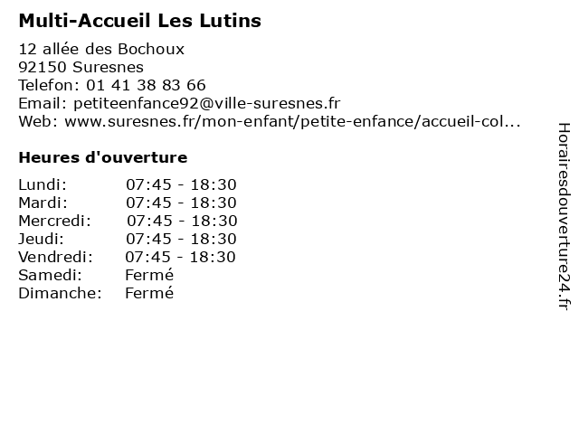 1 Multi-Accueil Les Lutins (Distance: 4,39 km) 22 Boulevard Maurice Berteaux, 78420 Carrières-sur-Seine accueil, creche, enfant, garderie, les, lutins, multi, éveil 2 Multi-Accueil Bois Joly (Distance: 0,00 km) 12 allée des Bochoux, 92150 Suresnes accueil, bois, creche, enfants, garderie, joly, multi, éveil 3 Sitis Multi Market (Distance: 0,16 km) 24 Rue Emilien Colin, 92150 Suresnes alimentaire, courses, divers, market, multi, sitis, supermarché 4 Multi-Accueil Ma Mere L'Oye (Distance: 1,48 km) 47 Boulevard Henri Sellier, 92150 Suresnes accueil, creche, enfants, garderie, l'oye, ma, mere, multi, éveil 5 Multi-Accueil Peter Pan (Distance: 1,62 km) 22 Rue des Carrières, 92150 Suresnes accueil, creche, enfants, garderie, multi, pan, peter, éveil 6 Multi-Accueil Roi Grenouille (Distance: 2,58 km) 1 Avenue Estournelles de Constant, 92150 Suresnes accueil, creche, enfants, garderie, grenouille, multi, roi, éveil |
